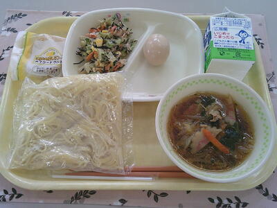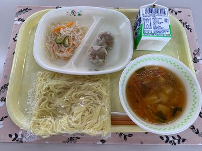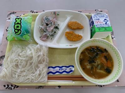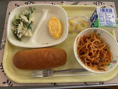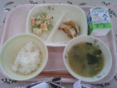 今日のたこやきと焼きそば、ミルメークは給食ポストにリクエストのあったメニューです。