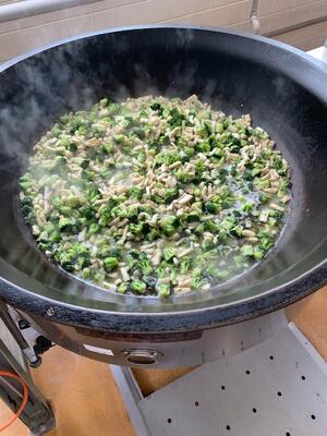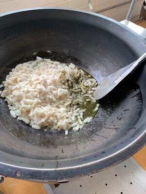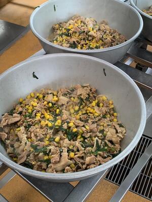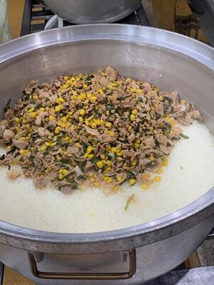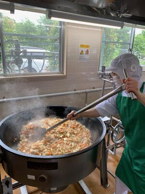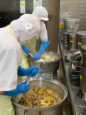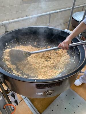 お米をつぶさないように混ぜるのがプロの技です!!とてもおいしく出来上がりました