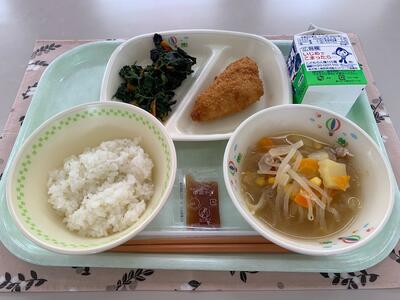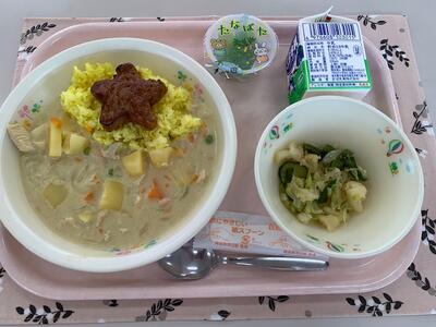 5月最終日です。新学期が始まって2か月が終わります。新しいクラスでの生活には慣れましたか?今日は給食では定番の味、カレーライスです。安心の味ですね。新しいクラスや新しい先生にドキドキした気持ちで始まった新学期も、たくさんの時間を一緒に過ごしていくことで、そこが居心地のいい「定番」の場所になっていきます。給食の時間も周りの人と仲良くなるチャンスの時間です。クラスの仲間と笑顔で楽しく食事をしてくださいね。