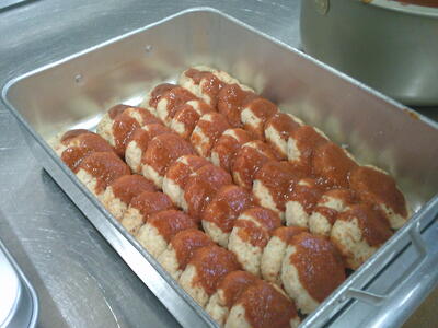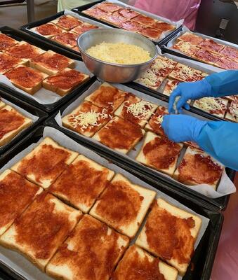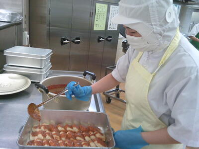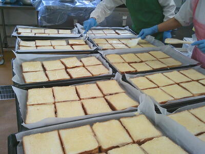 調理員さんが、パン1枚1枚にていねいに塗って焼いてくれました