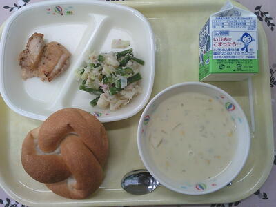 今日は、市貝小では初登場の「きなこ揚げパン」がでています。給食ポストへのリクエストと6年生からのリクエスト、さらに校長先生からもリクエストがあり採用になりました。持久走大会をがんばった後の揚げパンの味は、きっと格別ですね。