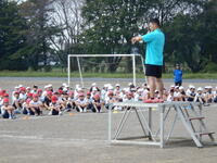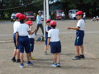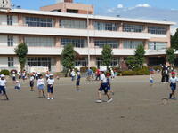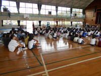 業間は、「体力つくり」を行いました。運動をするときの集合や並び方、「気を付け・やすめ」の姿勢を整える練習をやりました。まだまだ暑い中なので、時間は短めに集中して運動しています。