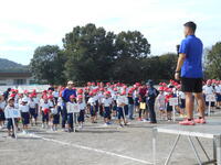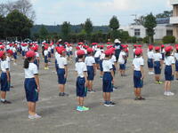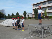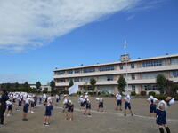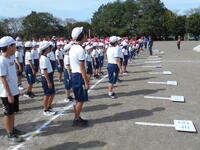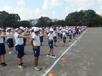 10月11日(土)は秋季大運動会です。今週から、全校での練習が始まりました。日差しはまだまだ強いのですが、吹く風はどこか涼しく感じる業間。集団での集合や並ぶ練習、ラジ体操、開閉会式の練習もしています。