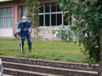 子供たちの大好きな校庭西側の森の草、校舎前の芝生に伸びていた草、フラワーロード付近の草などをきれいに払ってくださったので、とてもすっきりしました。ありがとうございました。