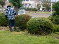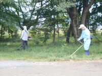 シニアアクティブクラブの皆さんに、学校周辺や校庭の草刈り、つるきり等の作業をしていただきました。