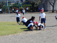 日差したっぷりの秋晴れの中、にこにこ班で遊びました。ドッジボール、ドッヂビー、だるまさんが転んだ、へびおに・・・班長さんを中心に遊びを考えています。汗をかきながら、にこにこ笑顔で遊ぶ子供たちです。