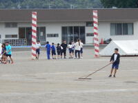 朝から、親子奉仕作業(4~6年生)を行いました。今回は、来月の運動会に向けてのテント組立・場退場門の設置、フラワーロードの除草、先週刈り取った草集めをしました。親子で協力して作業してくださったおかげで、各場所ともたいへんさっぱりときれいになりました。暑い中、御協力ありがとうございました。