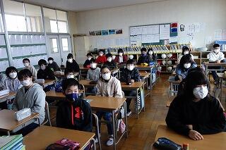 新型コロナウィルス感染症対策として、保護者、児童が別教室に分かれて、