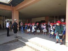 市貝小の前を通り過ぎるときは、学校のみんなが手を振ってくれました