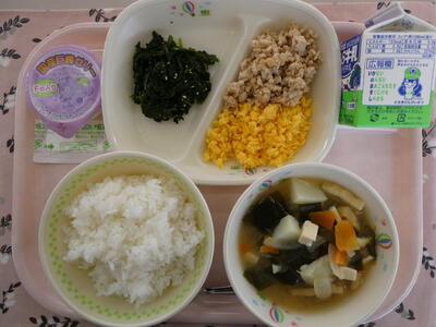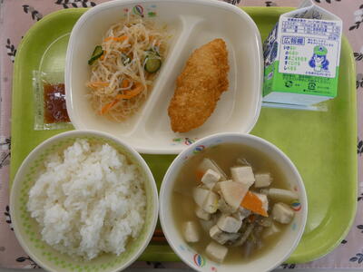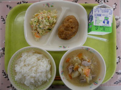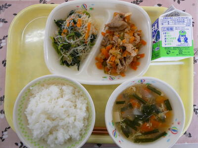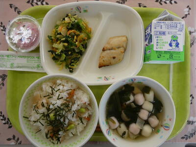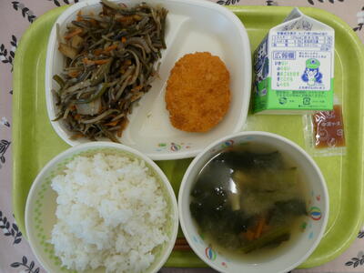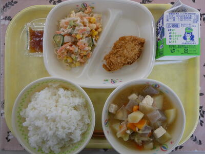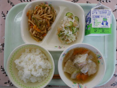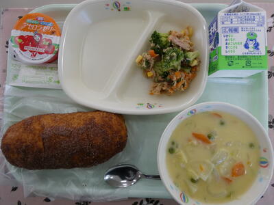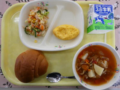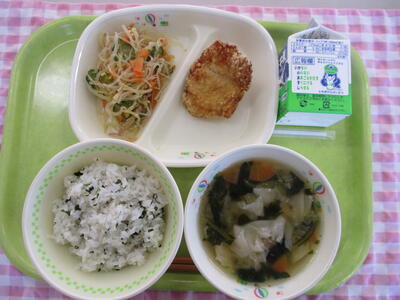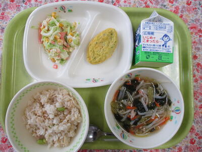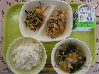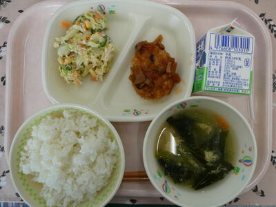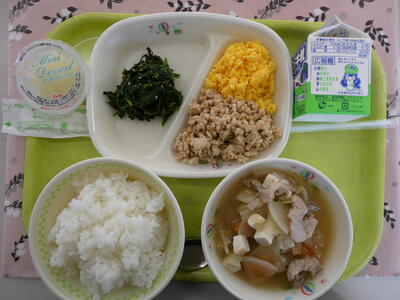 今日の献立は、小貝小6年生(D班)作成の献立です。家庭科の授業で献立を作成しました。