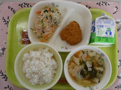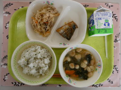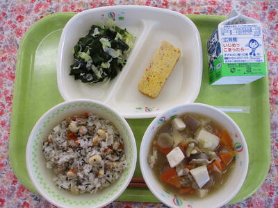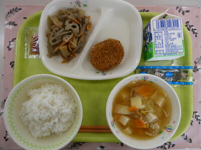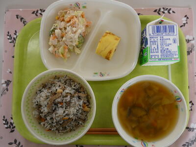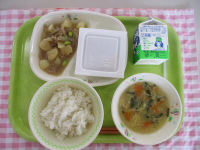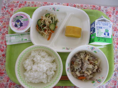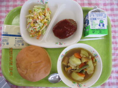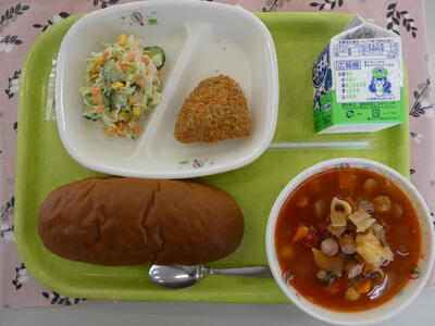 本日 遠足・修学旅行のため、子ども達は食しませんでしたが、こんな給食でした。