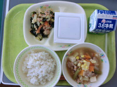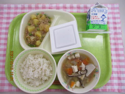 今日の給食の豚汁は一つ一つ丁寧にジャガイモなど食材を切っていただいています。味がしみこんでしかも食べやすいです。作っていただける方に感謝です。今日もおいしくいただきました。