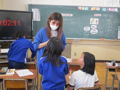 ALTの先生と外国語授業をしました。子どもたちは先生の母国の新年を祝う文化にビックリしながら、話を聞いていました!