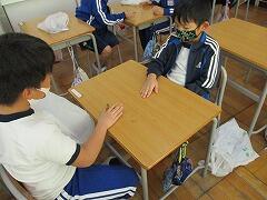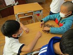 自分で作った4拍分のリズムを、友達と呼びかけっこして、つないでいきます。強弱を工夫して表現することができました。