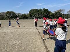 そんな今日は、体育でドッチビーを行いました。普通の大きさの倍以上もある大きなフリスビーを使って行いました!
