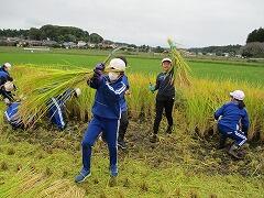 秋晴れの中とは行きませんでしたが、涼しいなか、汗びっしょりになりながら一生懸命稲刈りをしてくれました。