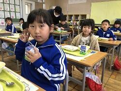 小学校生活も3日目・・・市貝小学校のおいしい給食にも慣れて、もりもり食べています!