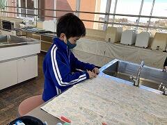 家庭科の学習では、ランチマット作りに入りました。スクールサポートの方にも協力していただきながら少しずつ完成に近づいています。