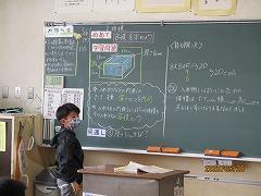 2校時目の算数では、「体積」の学習をしました、植木先生に丸付けをしてもらったり、教えてもらったりと意欲的に学習していました。