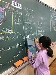 2校時目の算数では、「容積」の学習をしました。自分の考えをノートにたくさん書いていました。黒板に書いて説明するのも頑張っていましたよ。