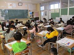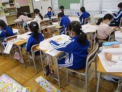 道徳では、「おおひとやま」のお話を読んで、決まりを守らずに、少しだけならいいだろうという考えから行動していると、それが積み重なって、みんなが困ることに気付き、進んで決まりを守ろうという意識を高めました。