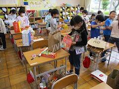 4校時は、図書室に本を借りに行きました。自分の読みたい本を探して、2冊ずつ借りました。毎週金曜日に本を返して、借ります。