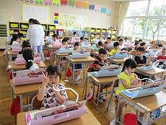 帰りの用意がすっかり済んで待っています。