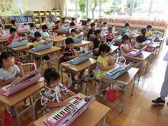 4校時音楽では、けんばんハーモニカのドの音を吹く練習をしました。ABグループごとに音を出したり、一人一人確認したりしました。