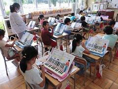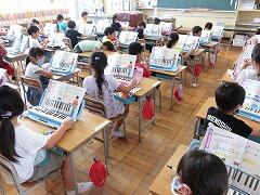 4校時音楽では、けんばんハーモニカのドの音を吹く練習をしました。ABグループごとに音を出したり、一人一人確認したりしました。