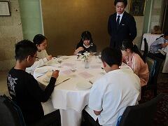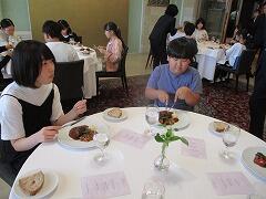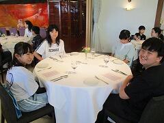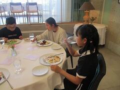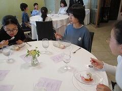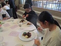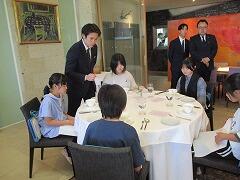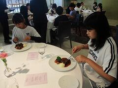 事前に調べておいたテーブルマナーを友達と確認し合ったり、スタッフの方に教えて頂いたりしながら、おいしいお食事をいただきました。子供たちは、「冷たいスープは初めて食べた!とってもおいしい!!」「牛肉とろける!」「お皿も温かい!」「デザートの盛り付けも素敵!!」など、感動しながら、心もお腹も満たされていったようでした