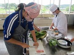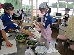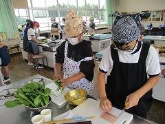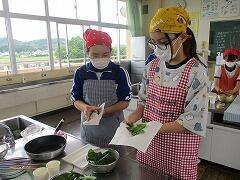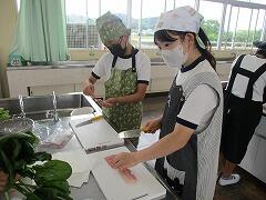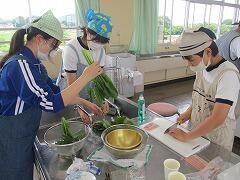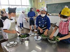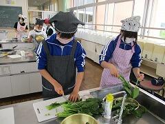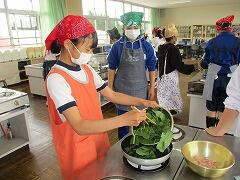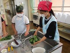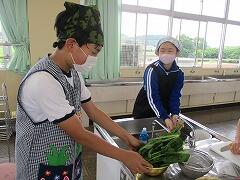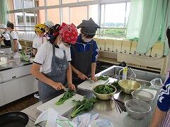 炒める調理をしよう第二弾!!青菜炒めを作りました食材を洗う人、切る人、使い終わった調理器具を片付ける人と、分担しながら手際よく作ることができました