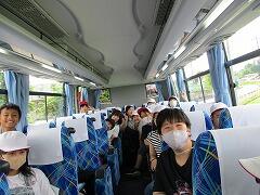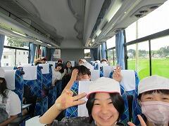小中連携交流でドッヂビー大会がありました。バスの中から楽しみな様子!!