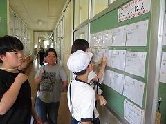 今年度から、定期的ににこにこ班で遊ぶ活動が始まりました。今日は第1回目!!違う学年と遊ぶ中で、子供たちはいろいろなことに気付き、次回に生かそうとしています。6年生がさらに成長するチャンスだねと、子供たちと話しました。次回に向けて、掲示物も更新!!