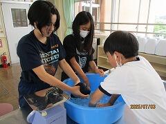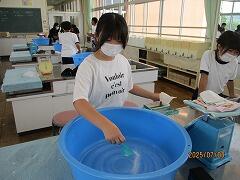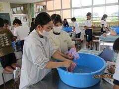 「夏をすずしくさわやかに」の学習で、手洗いでの洗濯実習を行いました。
