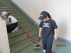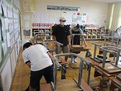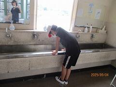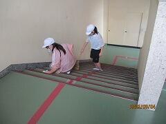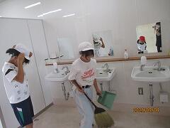 今週は、短縮日課で縦割班の清掃ができないため、トイレや階段などを6年生が清掃しました。どこの清掃場所でも、協力して行っていました。