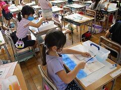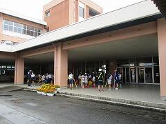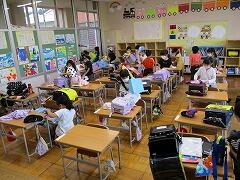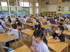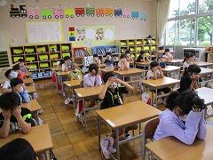 突然の豪雨で驚きました。ちょうど体育の授業中でしたので、体育館で、耳をふさいでいる子もいました。給食を食べているとだんだん晴れてきて、昼休みには、外遊びができました。