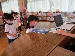 図書室の本を借りに行きました。本格的に個人の貸し出しようバーコードをつかって借りました。