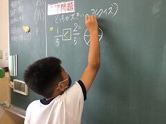 算数では、「分数の大きさとたし算ひき算」の学習に入りました。ピザの絵を描いて説明してくれる人もいました。