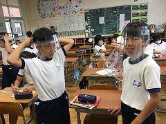 理科の実験で使用するために、フェイスシールド作りをしました。組み立てるのが得意な人はすぐに完成させていました。