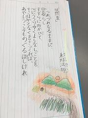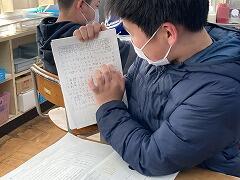 国語では「古文に親しむ」の学習をしました。「竹取物語」「徒然草」「おくのほそ道」から、自分が暗唱したいものを選び、ノートに視写しました。挿絵も人それぞれで、とてもよく書けています。国語の時間が終わると、「二つ覚えたので聞いてください」と暗唱テストをする人もいました。並んでいるときもぶつぶつぶつぶつ・・・練習に必死なみんながとってもかわいかったです。