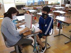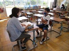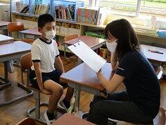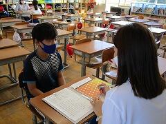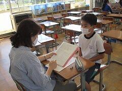 月曜日の英語の時間に、これまで習った表現を使って、自己紹介をし、さらに相手の質問に答えるテストを行いました。子どもたちは緊張しながらも上手に自分の事を伝えることができました。ワークシートを見ずにコミュニケーションをすることの難しさも感じたようです。