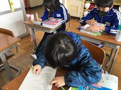 隅の方で書く人や、図書室の机で書く人、図工室の机で書く人、誰もいないところで書く人などなど