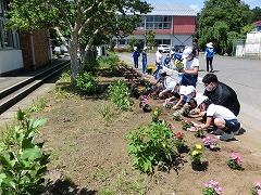 また、今年度から4年生も委員会活動に参加しております。昼休みには、環境・美化委員会の児童たちが、一生懸命に花壇やプランターの整備をしました。暑い中でしたが、みんな一生懸命に働くことができていました。