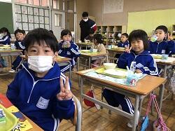小学校生活も3日目・・・市貝小学校のおいしい給食にも慣れて、もりもり食べています!