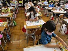 図工では、「みてみてあのね」の絵を描きました。来週、絵の具を使って仕上げをする予定です。