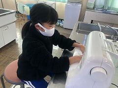 在校生へのプレゼントということで、家庭科の時間にぞうきん作りをしました。