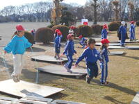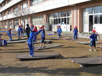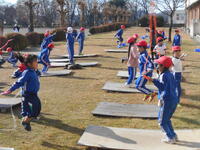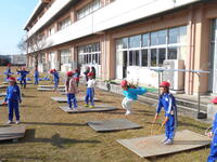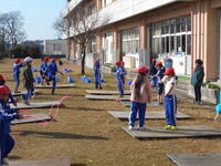 冬定番の運動といえば、・・・「縄跳び」です。ジャンピングボードを設置すると、たちまちボードがうまるほど、みんなで短縄跳びに挑戦です。今日の昼休みは、1年生の挑戦が多かったですね。2年生や他の学年の子供たちも、楽しそうに運動しています。今年はどんな技ができるようになるかな。ほくそ笑む・ニヤリ
