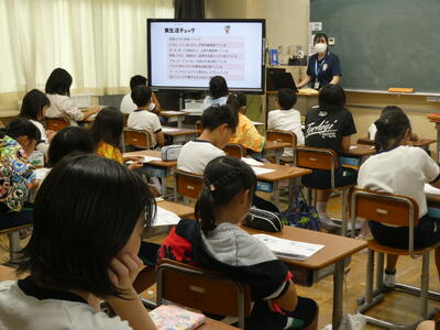 7月12日(金)に、5年生は小児生活習慣病予防検診の事後指導として、市貝町の保健師や管理栄養士の方からお話をいただきました。生活習慣病や食生活等について、模型や写真などを使ってわかりやすく教えてくださいました。これからの生活習慣について考えるよい機会になりました。
