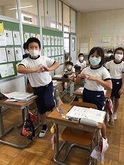 音楽では、「和音のはたらきを感じ取ろう」の学習をしました。「ド・ファ・ラ」の4度の和音のひびきを聞いて、その音に合うポーズをグループごとに考えました。明るいイメージだから・・・と色んなポーズが出てきて盛り上がりました♪「茶色のこびん」も階名で歌えるようになりましたよ。また明日も元気に来てくださいね。