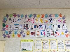 今年一年間の学級目標は、「思いやりの心をもっていて さらに下級生のお手本になる 明るい5年生」です。一人一人の手形には個人の目標も書かれています。この一年間、「思いやる心」を大切に過ごしてほしいと思います。また来週も元気に会いましょう^^